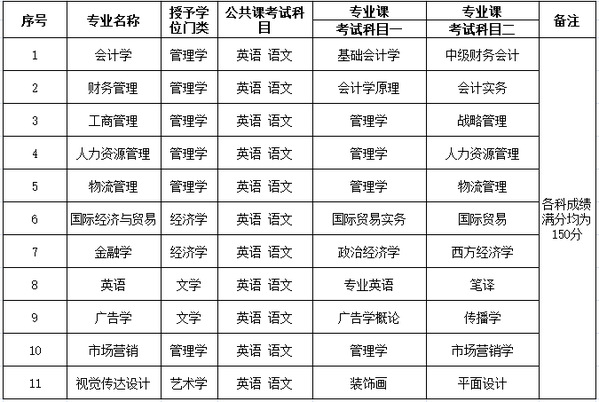 考试科目分省考试院组织的统考科目和由必赢组织的专业课科目两大类。招生考试实行“2门公共课(各150分)+2门专业课(各150分)”的测试方式,公共课由省考试院组织进行统考。专业课由必赢自主命题或开展联合命题,并组织考试。