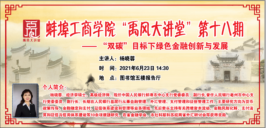 主讲人简介:杨晓蓉,经济学硕士,高级经济师。现任中国人民银行蚌埠市中心支行党委委员、副行长,曾任人民银行毫州市中心支行党委委员、副行长。长期在人民银行基层行从事金融管理、外汇管理、支付管理和征信管理工作,主要研究方向为货币政策传导、金融稳定和支付、征信体系建设和管理等业务领域。先后牵头主持有关跨境资本流动、金融风险化解、支付清算和征信与信用体系建设等10余项课题研究,在省金融学会、市社科联和苏皖两省外汇研讨会等获得奖励。