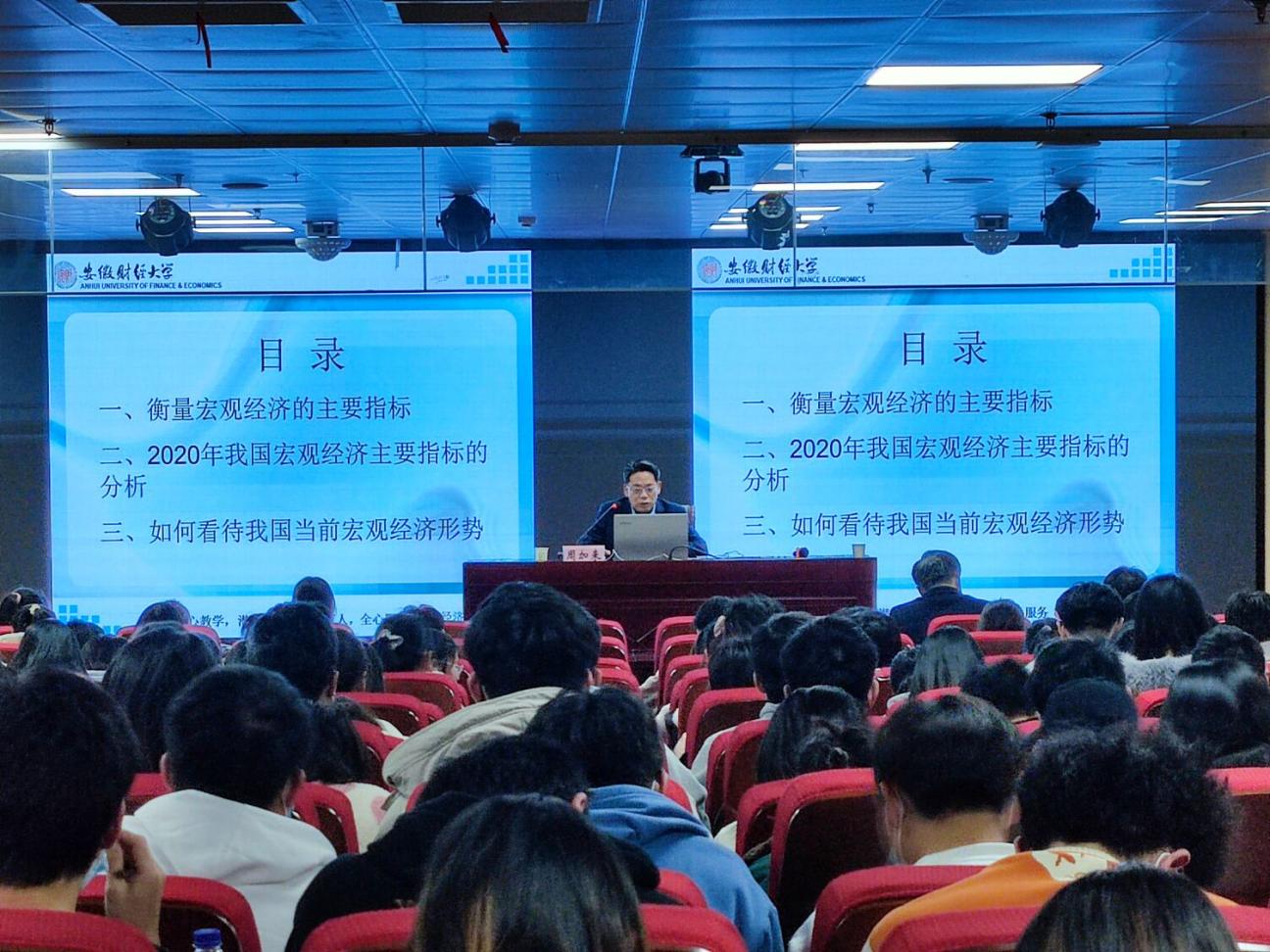 12月1日下午,必赢线路检测3003no1“禹风大讲堂”第二十期在图书馆五楼报告厅举行。由安徽财经大学党委常委、副校长,经济学二级教授,博士生导师,国务院特殊津贴专家周加来应邀为我校师生作题为《如何看待我国的宏观经济形势》的专题讲座。方敏副校长及各职能部门,二级学院负责人出席讲座,讲座由单学勇副校长主持。
