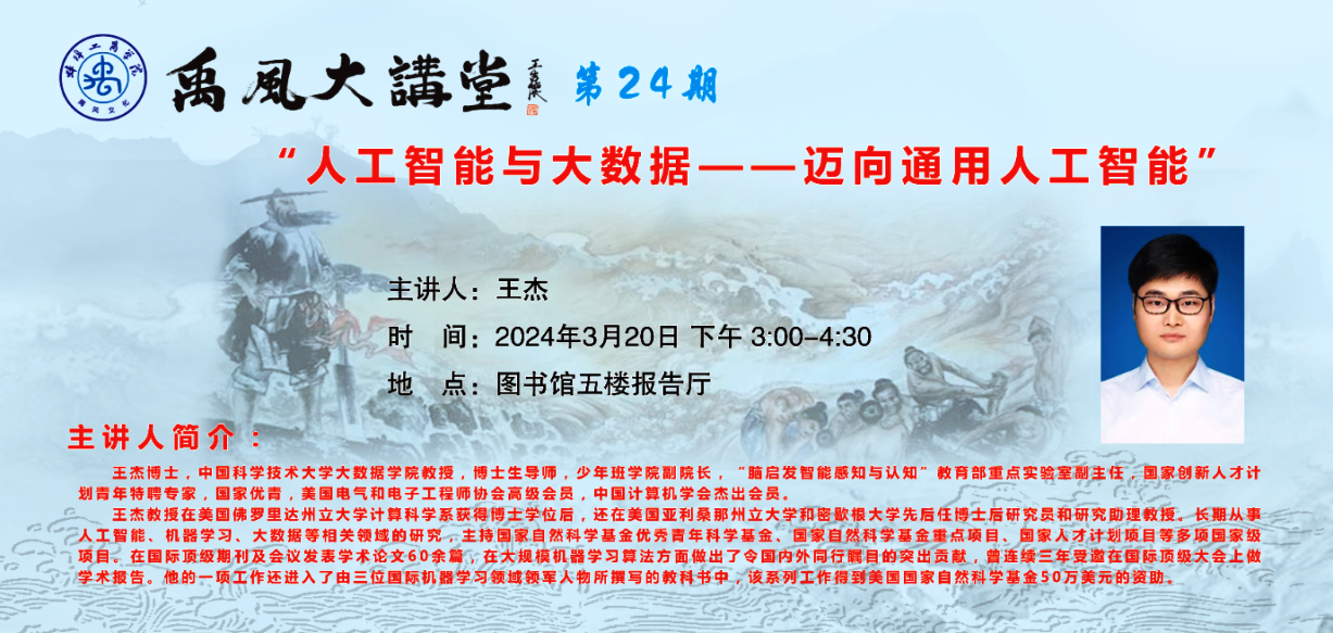 主讲人简介:王杰博士,中国科学技术大学大数据学院教授,博士生导师,少年班学院副院长,“脑启发智能感知与认知”教育部重点实验室副主任,国家创新人才计划青年特聘专家,国家优青,美国电气和电子工程师协会高级会员,中国计算机学会杰出会员。