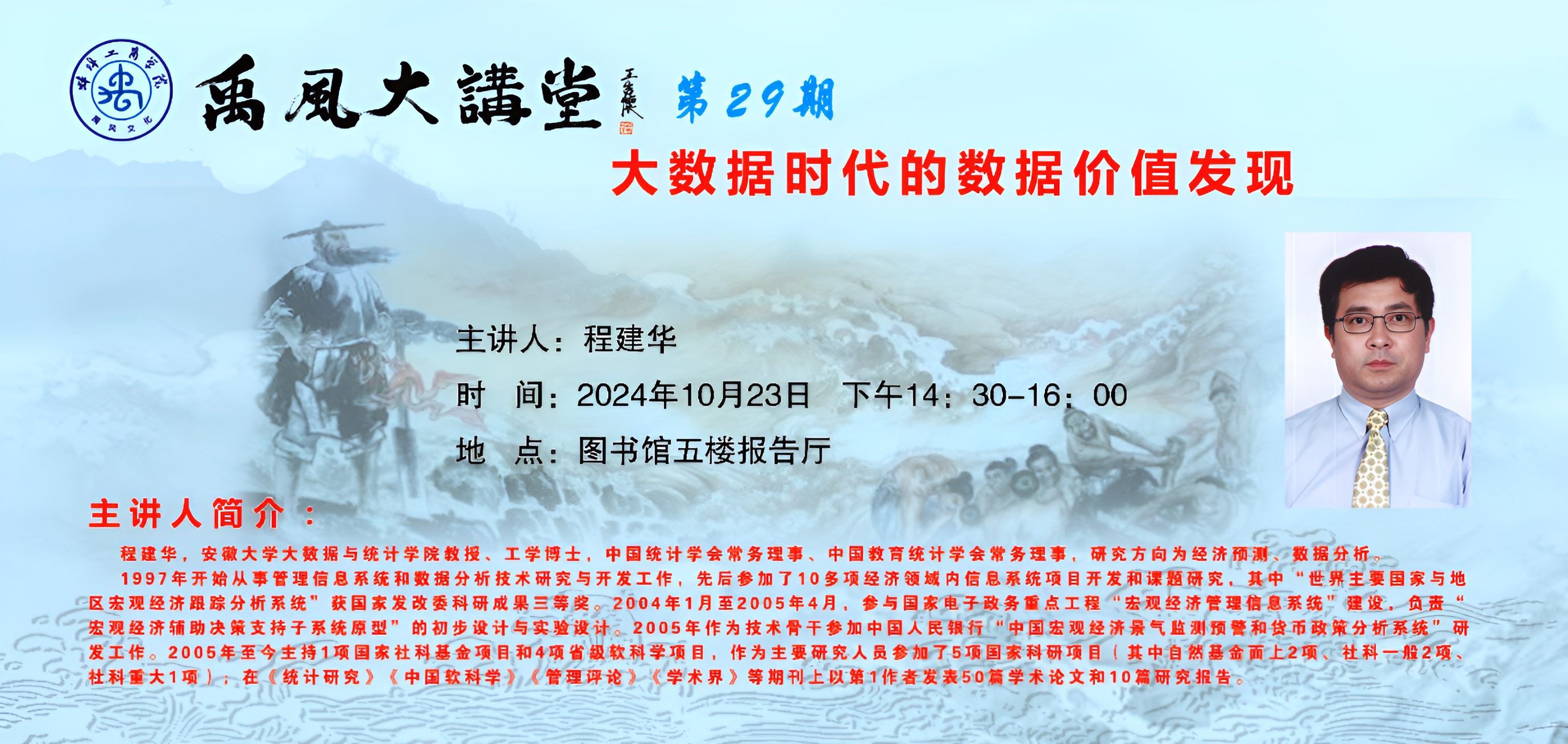 主讲人简介:程建华,安徽大学大数据与统计学院教授、工学博士,中国统计学会常务理事、中国教育统计学会常务理事,研究方向为经济预测、数据分析。1997年开始从事管理信息系统和数据分析技术研究与开发工作,先后参加了10多项经济领域内信息系统项目开发和课题研究,其中“世界主要国家与地区宏观经济跟踪分析系统”获国家发改委科研成果三等奖。2004年1月至2005年4月,参与国家电子政务重点工程“宏观经济管理信息系统”建设,负责“宏观经济辅助决策支持子系统原型”的初步设计与实验设计。2005年作为技术骨干参加中国人民银行“中国宏观经济景气监测预警和货币政策分析系统”研发工作。2005年至今主持1项国家社科基金项目和4项省级软科学项目,作为主要研究人员参加了5项国家科研项目(其中自然基金面上2项、社科一般2项、社科重大1项);在《统计研究》《中国软科学》《管理评论》《学术界》等期刊上以第1作者发表50篇学术论文和10篇研究报告。