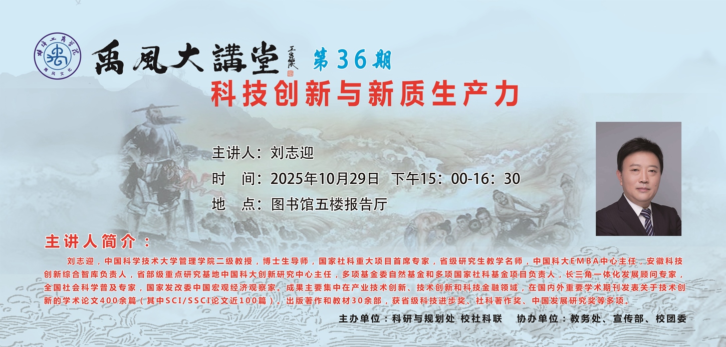 主讲人简介:刘志迎,中国科学技术大学管理学院二级教授,博士生导师,国家社科重大项目首席专家,省级研究生教学名师,中国科大EMBA中心主任,安徽科技创新综合智库负责人,省部级重点研究基地中国科大创新研究中心主任,多项基金委自然基金和多项国家社科基金项目负责人,长三角一体化发展顾问专家,全国社会科学普及专家,国家发改委中国宏观经济观察家。成果主要集中在产业技术创新、技术创新和科技金融领域,在国内外重要学术期刊发表关于技术创新的学术论文400余篇(其中SCI/SSCI论文近100篇)。出版著作和教材30余部,获省级科技进步奖、社科著作奖、中国发展研究奖等多项。